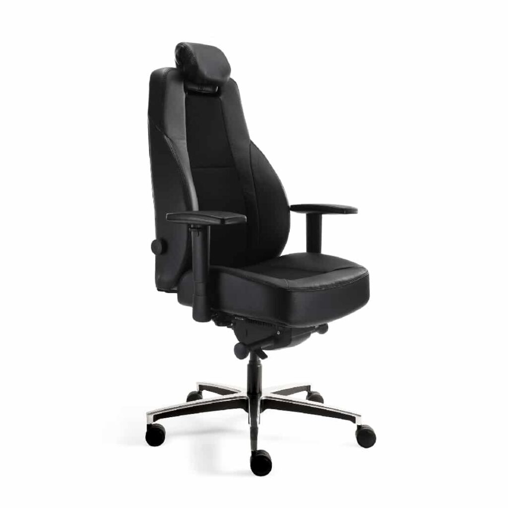 | Un fauteuil de travail pensé pour répondre aux exigences du travail en 24/7Pour les tâches intensives qui nécessitent l’occupation d’un poste sans discontinuité, comme la surveillance ou les postes de garde, les exigences les plus élevées en termes de confort et de durabilité sont imposées aux fauteuils. C'est pourquoi presque tous les éléments constituants ce fauteuil 24/7 sont réglables et extrêmement robustes. Le modèle BX-24 est équipé de série d'un dossier haut ergonomique et réglable en hauteur, avec appui-tête et soutien lombaire ajustable, d'accoudoirs réglabes, d'une assise extra confortable avec réglage de la profondeur sur 6 cm et d’un revêtement durable. Doté de réglages intuitifs et d’un très haut niveau de confort, il deviendra l’allié idéal pour améliorer le confort des postes de travail 24/24.