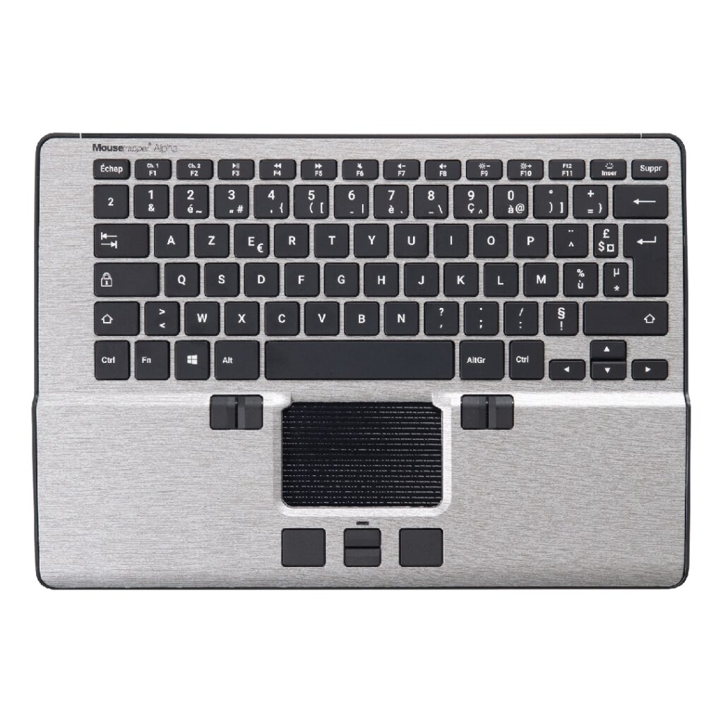 ![]() | Le pointeur central combiné à un clavier, idéal pour les travailleurs nomadesLe pointeur central ALPHA présente la particularité de combiner les avantages d’un pointeur central avec un clavier. Ainsi, vous n’avez plus à rechercher le clavier qui convient à votre pointeur central, ni à régler le jeu entre les deux périphériques. Ce produit convient parfaitement pour les travailleurs nomades ou alternant entre plusieurs lieux de travail. Le pointeur central ALPHA se connecte à votre ordinateur en Bluetooth ou au moyen d’un câble, et dispose d'une grande autonomie de batterie (jusqu'à 2 mois). Ce matériel permet de supprimer les contraintes observées lors de l’utilisation d’une souris traditionnelle, car sa conception permet l'utilisation des 2 mains et répartie ainsi la charge de travail des membres supérieurs. En plus de son clavier, le pointeur central ALPHA dispose d'un mini tapis central cliquable permettant de faire défiler le pointeur et de bénéficier de toutes les fonctions habituellement sollicitées avec la souris : clic droit, clic gauche, copier/coller. De plus, l'ensemble de ses boutons sont personnalisables pour plus de praticité et de performance. Une solution surprenante, à tester d'urgence pour tous les utilisateurs recherchant une alternative à la souris classique. Caractéristiques techniques